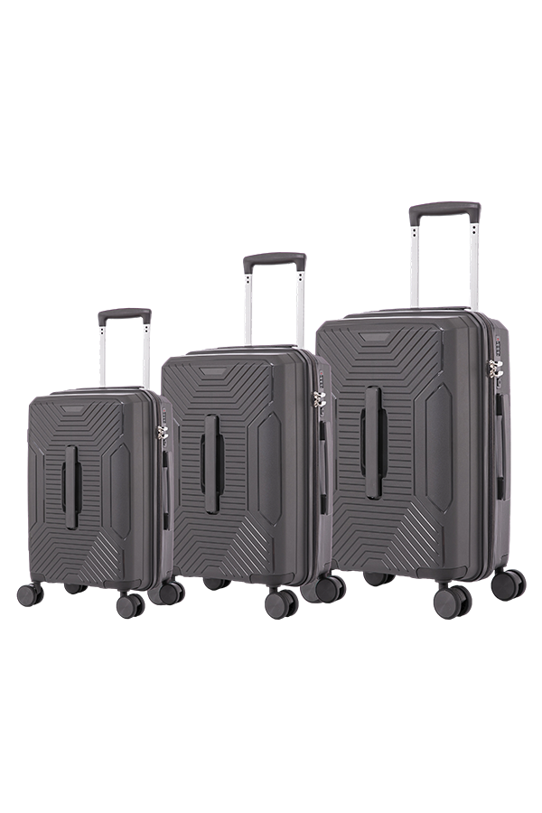 The LT706 large-capacity PP hardshell suitcase is designed for users who love outdoor travel and long-distance travel. It is available in three sizes: 20", 26", and 30". It has a larger capacity and can flexibly cope with various travel needs. It is made of high-strength polypropylene material, has excellent pressure resistance and drop resistance, and is suitable for a variety of complex environments. The gray appearance is low-key and steady, showing a professional adventure style.