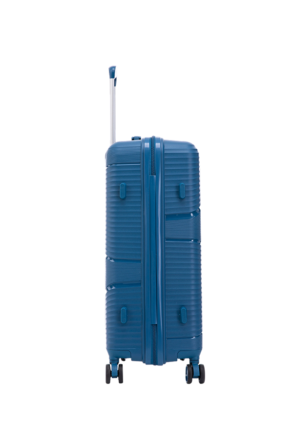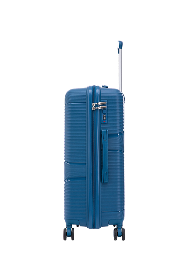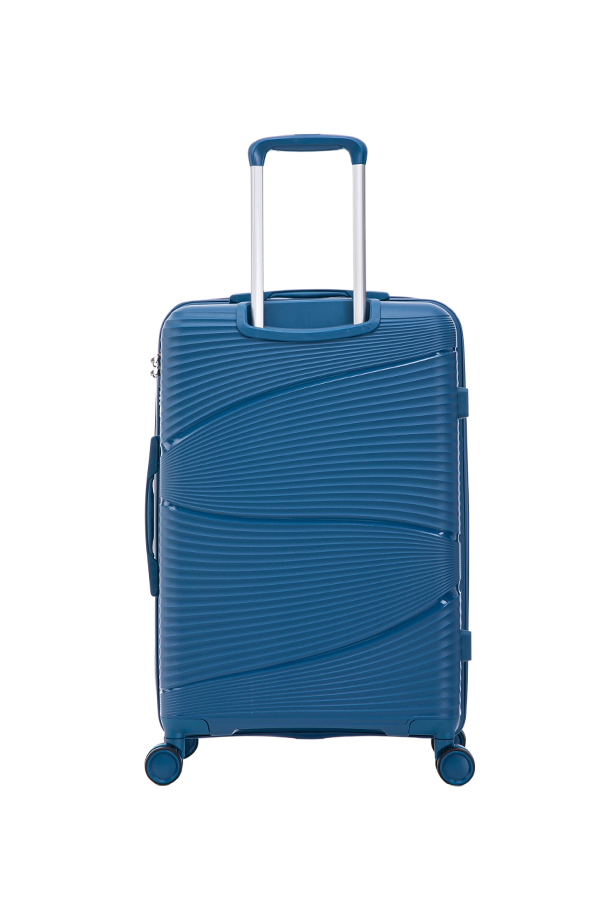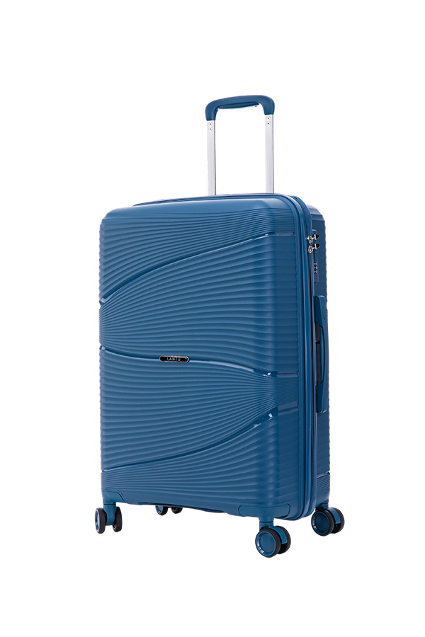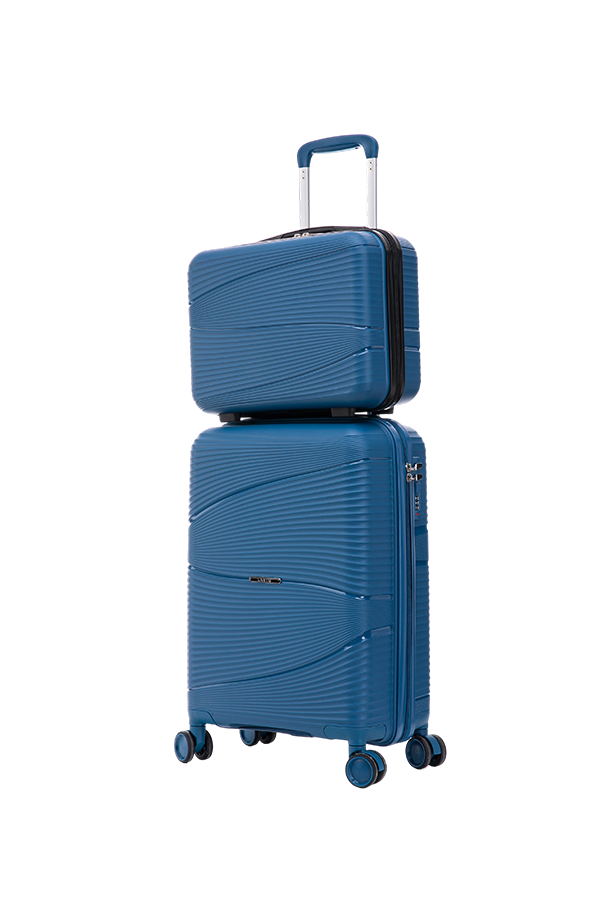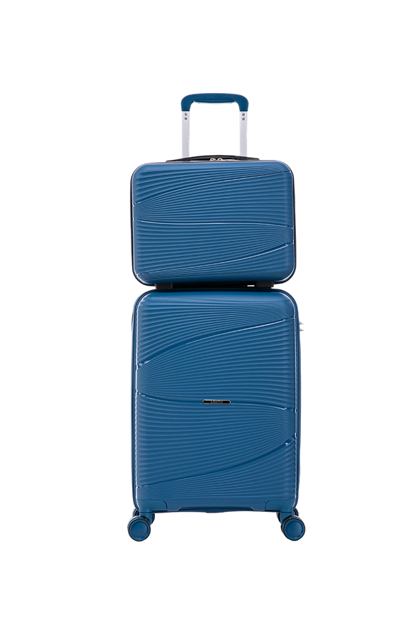 Our LT701 PP hardshell suitcase is paired with a cosmetic case of the same style, bringing you a more convenient and fashionable experience for short trips or boarding trips. The main case is made of high-strength PP material, which is sturdy and durable, anti-pressure and anti-fall, and perfectly protects personal belongings. The cosmetic case can be stacked firmly on the pull rod, saving effort and space, especially suitable for female users to carry skin care products, cosmetics or valuable small items.